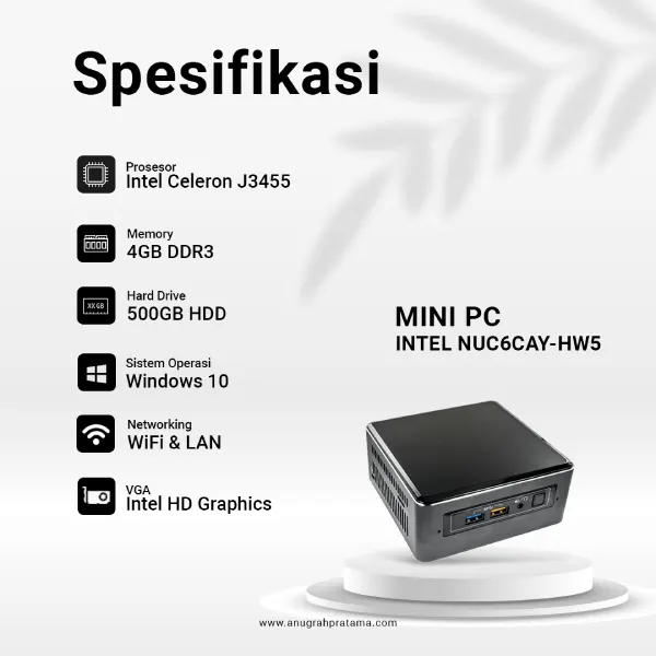Anugrahpratama.com Jual INTEL NUC6CAY-HW5 (Celeron J3455, 4GB, 500GB, Win 10) Desktop Mini PC