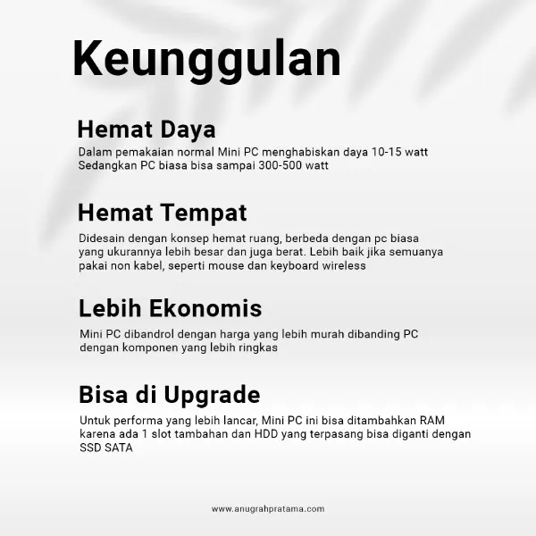 | Ukuran | MINI PC SSD, PC SSD+MONITOR, MINI PC HDD, PC HDD+MONITOR |